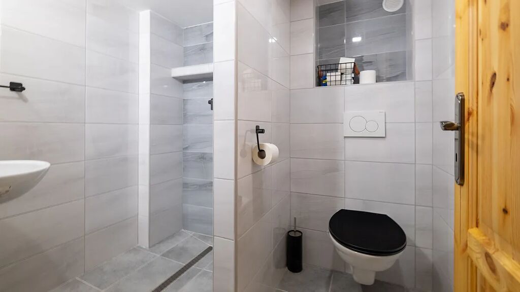 Už při vstupu vás přivítá velká terasa, která přímo vybízí k ranní kávě nebo večerním posezením s přáteli. V útulném obývacím pokoji si pak vychutnáte praskání ohně v kachlových kamnech. V přízemí je dále prostorná kuchyň a nová koupelna se sprchovým koutem a WC. Z obývacího pokoje se po dřevěných schodech dostanete do patra, kde na vás čekají dvě ložnice, každá s vlastním balkónem – ideální místo pro probuzení s výhledem do zeleně.