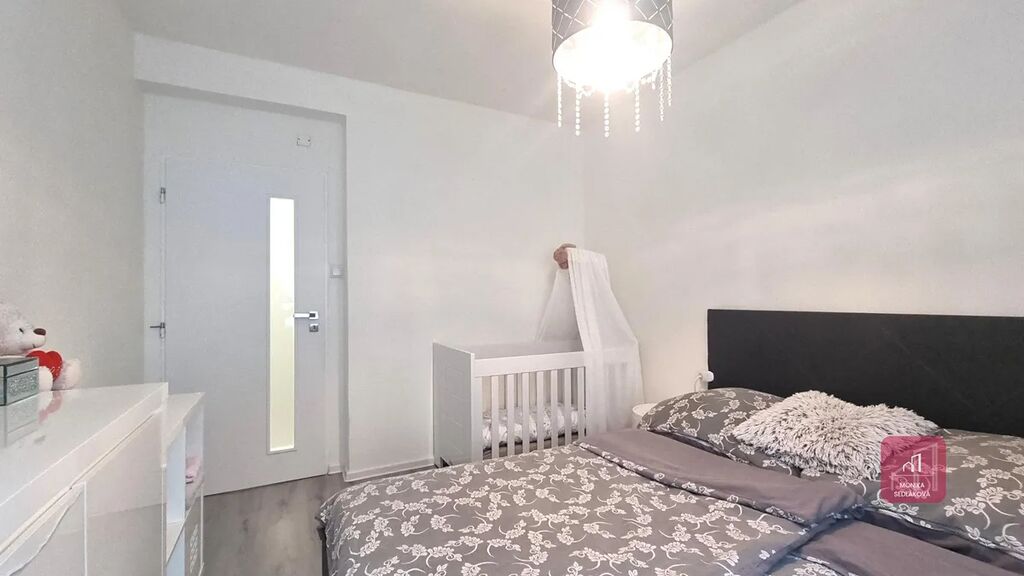 Byt se skládá z kuchyně s přímým vstupem do obývacího pokoje, ložnice, předsíně, koupelny s vanou, samostatné toalety a praktické šatny s dostatkem úložného prostoru. Výhodou jsou dva prostorné balkony s výhledem do zeleně, které lákají k odpočinku.