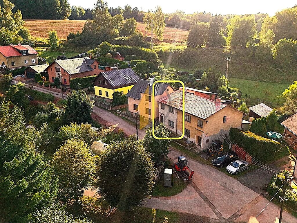 Přístup k domu je zajištěn z obecní komunikace. Výhodou je také možnost přikoupit sousední řadový dům se zahradou a rozšířit tak své bydlení nebo investiční záměr.
