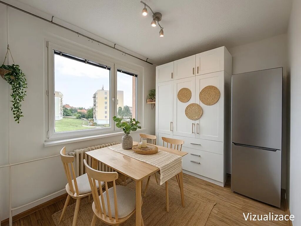 Byt je čerstvě vymalován a v pokojích položena nová vinylová podlaha, abyste se zde cítili ihned jako doma. Dispozici bytu je možné oddělením jídelny upravit na 3+1.