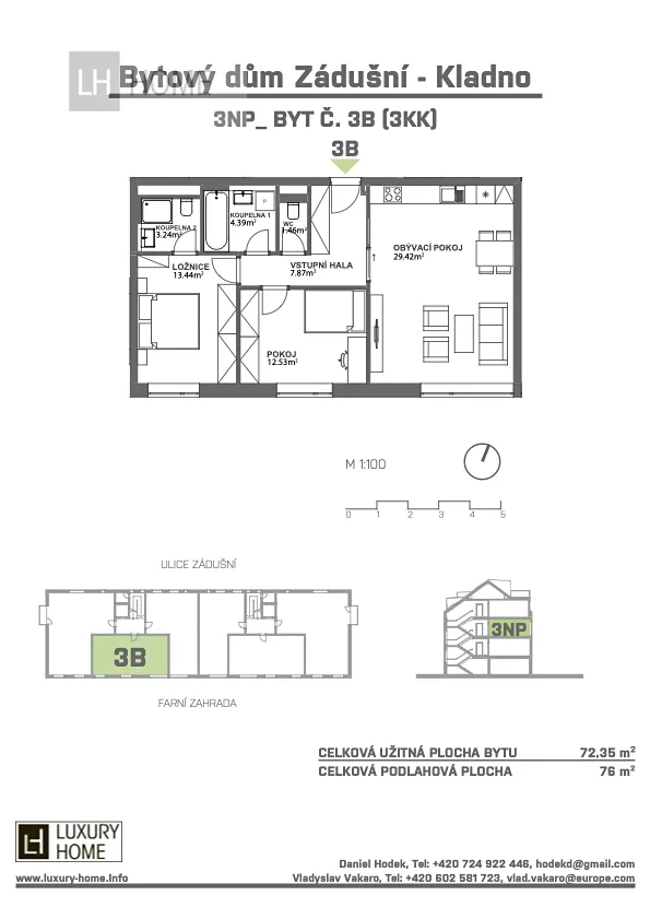 Obytná plocha o výměře 72 m2, celková plocha celkem 76 m2.