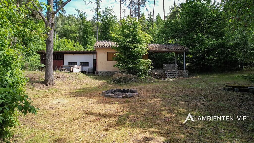 Dům se nachází v bezprostřední blízkosti lesa, na konci slepé ulice v nové zástavbě, bez možnosti navazující okolní výstavby. Součástí prodeje nemovitosti je totiž přímo navazující zahrada o výměře 2469m2, na které se nachází i rekreační objekt, určený k rekonstrukci s možností připojení na všechny sítě (zpracována studie na celoročně obyvatelnou chatu). Tímto je zaručeno maximální soukromí, pohoda a klid prodávaného rodinného domu.
