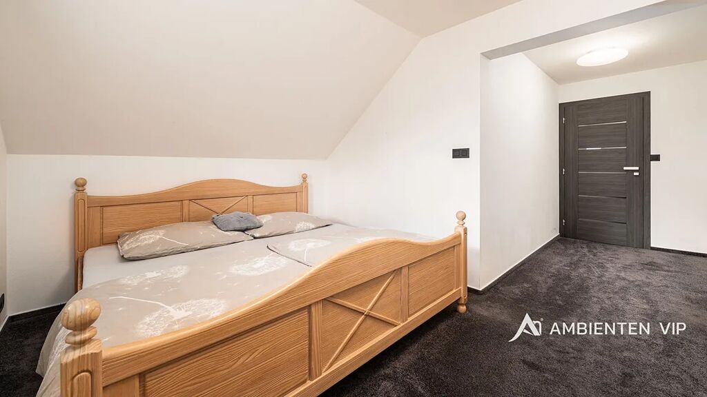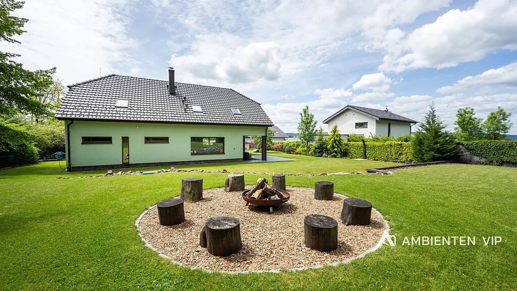 Rodinný dům je určen pro náročného klienta či větší rodinu, která hledá komfortní, prostorné a maximálně klidné bydlení. Vše lze přizpůsobit náročnosti klienta, kdy může jednotlivé místnosti využít pro relax, jako ložnici, dětské pokoje či pro podnikání. Okolí domu, zahrady a vedlejší zahrady s chatou je možné ještě dotvořit dle vkusu, požadavku nebo představ budoucího majitele této krásné nemovitosti.