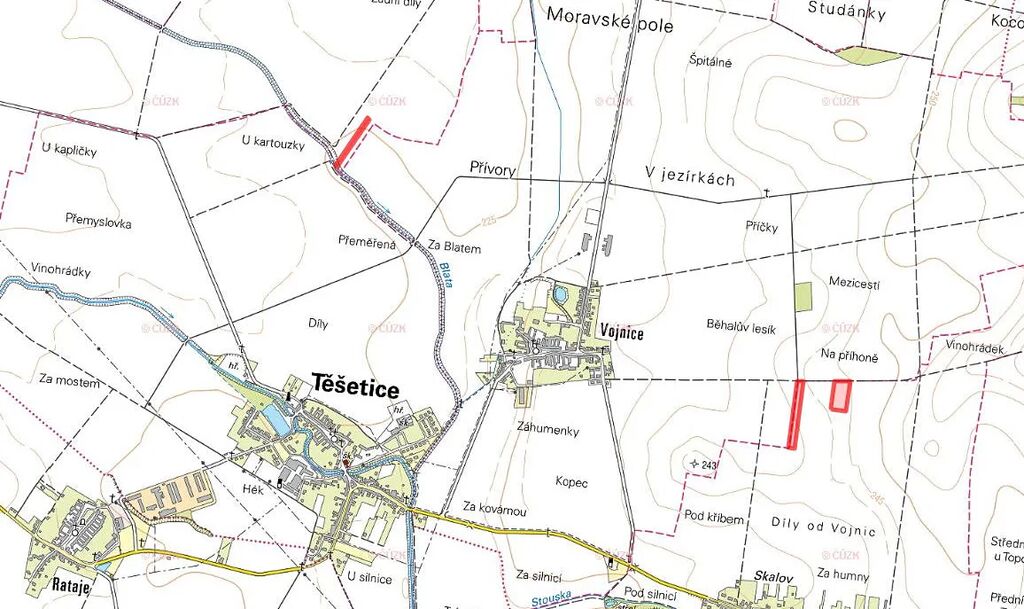 Na prodej nabízíme tři pozemky s výlučným vlastnictvím v okrese Olomouc, zapsané na listech vlastnictví č. 393 a 232. Pozemky se nacházejí v katastrálních územích Loučany na Hané a Ústín.