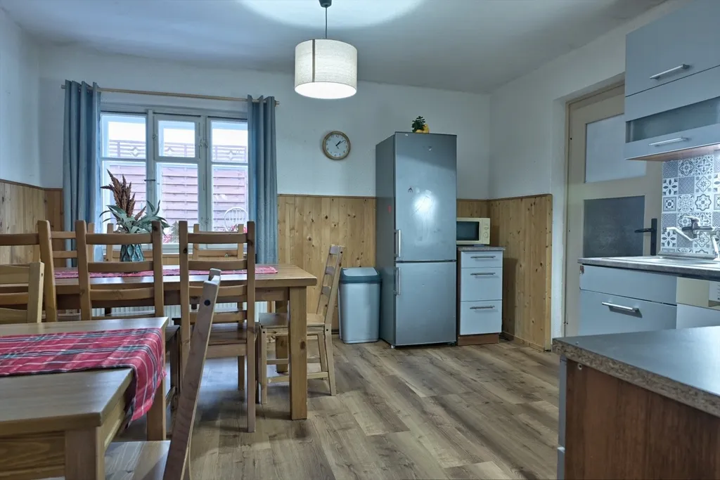 Prodej původní krkonošské chalupy nacházející se 400 m od lyžařského střediska v blízkosti centra horské obce Černý Důl. Zasněžovaná sjezdovka, která je součástí ski resortu Černá hora – Pec a potěší milovníky sjezdového lyžování i navazujících běžkařských tras. Chalupa je vhodná i jako investice ke krátkodobým pronájmům. V přízemí je k dispozici prostorné zádveří se schodištěm, obývací pokoj, kuchyně a dvě ložnice, dva pokoje se nachází v podkroví. V přízemí jsou obnoveny podlahy. K domu navazuje přístavba s rekonstruovanou koupelnou a samostatnou toaletou. V chodbě je technickým prostorem s plynovým kotlem a zásobníkem na teplou vodu. Dům je napojený na kanalizaci. Na oplocené zahradě u domu je posezení a dětské hřiště. V dosahu se nachází pošta, obecní úřad, obchody, restaurace, mateřská a základní škola v rámci městyse. Další markety, služby a volnočasové vyžití ve Vrchlabí vzdáleném 10 km. Pro více informací či domluvení prohlídky kontaktujte makléře.