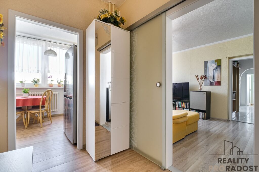Výhodou bytu je jeho variabilita a množství úložného prostoru. Úložný prostor je hned u vstupních dveří v podobě šatny, tak také u koupelny jako samostatná spíž a dále množství úložného prostoru na chodbě.