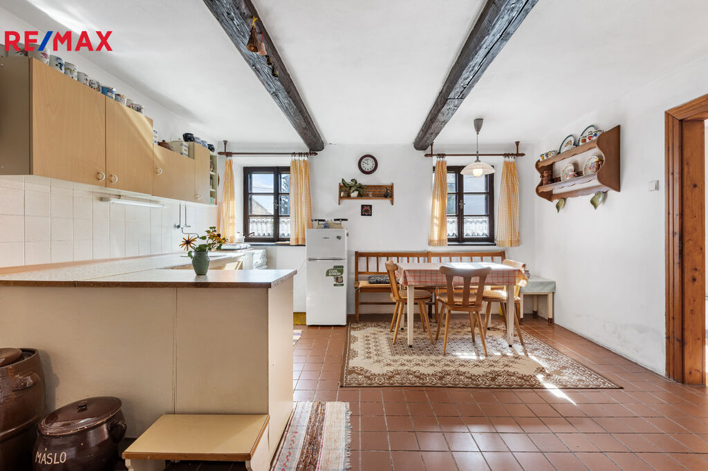Roubenka (90 m²) – částečně zrekonstruovaná, se třemi místnostmi, předsíní s komorou a možností vybudování obytného podkroví. Skvělý prostor pro dětské pokoje či útulnou pracovnu.
