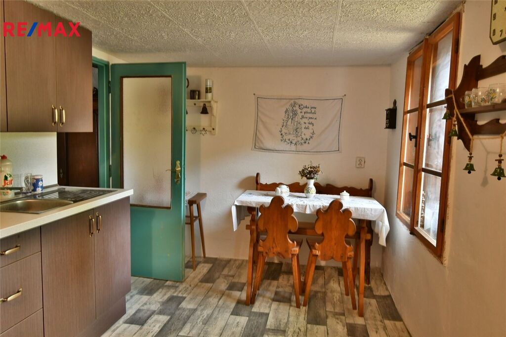 Jedná se poloroubenou lidovou stavbu, která je typická pro tuto oblast. V přízemí chalupy se nachází zádveří, chodba, kuchyně, světnice, koupelna se splachovacím WC a vstup na půdu. Chalupa prošla v posledních letech částečnou rekonstrukcí. Je zde zaveden elektrický proud, nový vodovod, nové rozvody vody a odpadu, nová kuchyňská linka, koupelna, WC. V kuchyni je sporák s troubou na tuhá paliva a s výměníkem do radiátorů, které jsou ve světnici, v chodbě a koupelně, ve světnici jsou další menší kamna tuhá paliva. Ohřev teplé vody v koupelně i v kuchyni zajišťuje elektrický boiler. V koupelně je nižší strop necelých 180cm. Okna jsou dřevěná - špaletová. Jelikož v místě není splašková kanalizace, tak je velkou výhodou nově zbudovaný biologický septik s filtrem a vsakovacím trativodem, který zajišťuje legální, bezproblémové a bezúdržbové nakládání s odpadními vodami, odpovídající požadavků zdejší CHKO Broumovsko. Nemovitost lze tedy ihned užívat. Náklady na provoz a užívání jsou zde minimální. Chalupa je vhodná pro chalupáře, kteří ocení možnosti a potenciál nemovitosti a místa, případně ke krátkodobým pronájmům. Atraktivní a vyhledávaná místa v lokalitě: stolová hora Ostaš, Adršpašsko-teplické skály, Broumovské stěny, údolí Metují, atd...