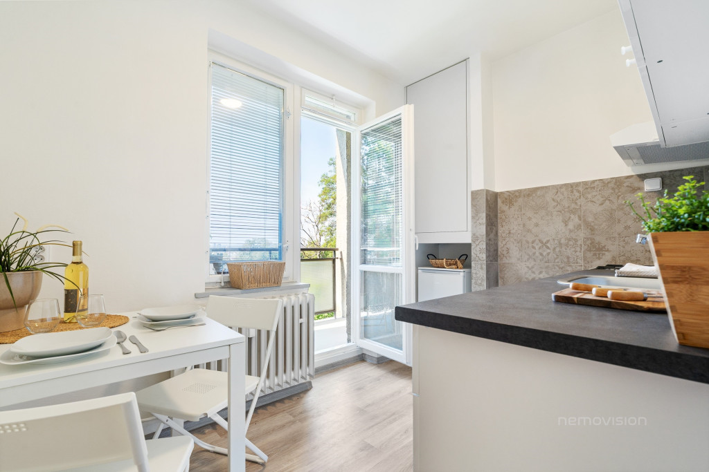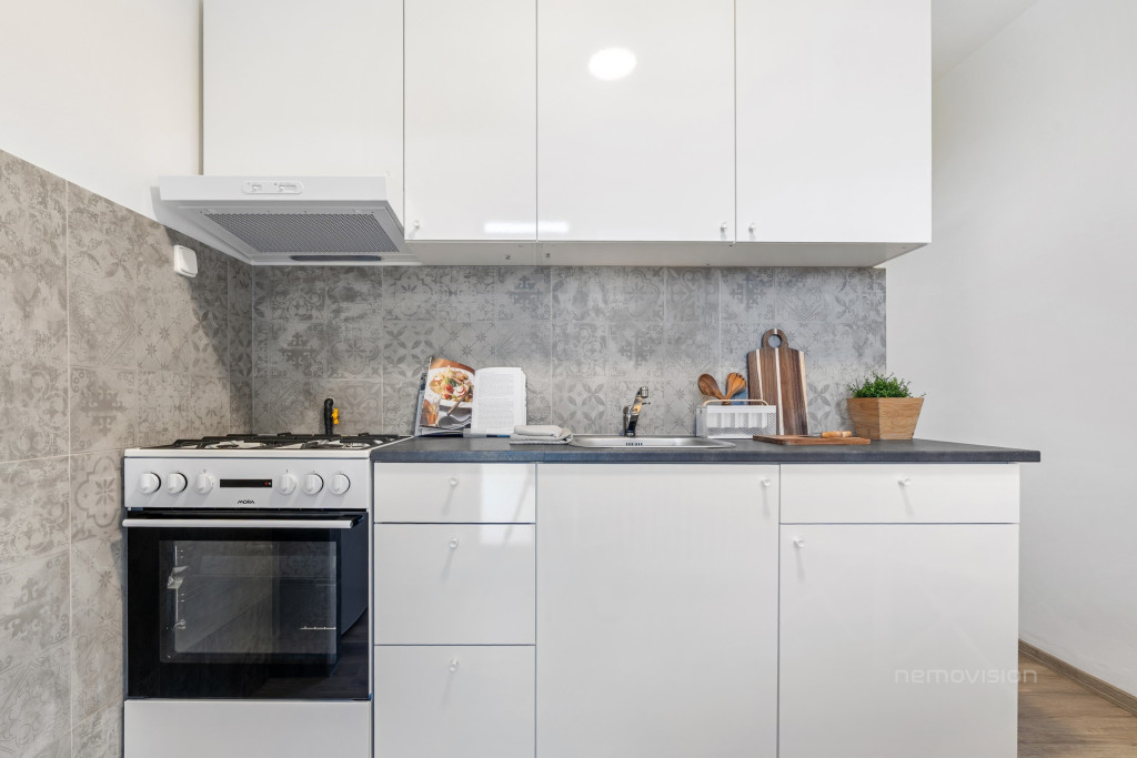- Moderní rekonstrukce – nové podlahy, kuchyňská linka včetně spotřebičů, koupelna, WC, obklady, dveře i výmalba.