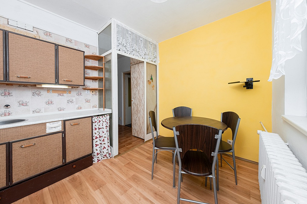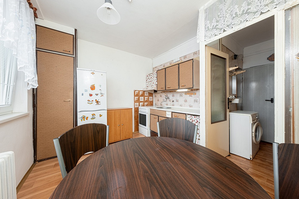 Dispozice: kuchyně 9 m² se spíží, pokoj 16 m² se vstupem na balkon 2,5 m², koupelna s vanou, společná s WC, k dispozici sklep, který nabízí úložný prostor navíc, což oceníte především při skladování sezónních věcí