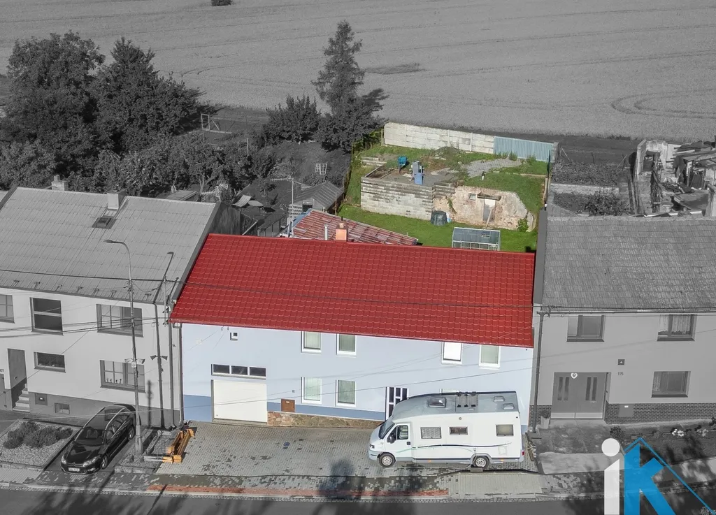 Na dům navazuje zahrádka, dvorek s bazénem a posezením. Parkování je možné před domem, v průjezdu nebo na zahradě.