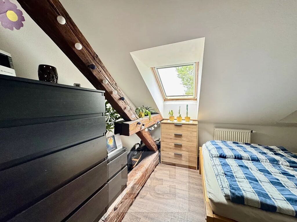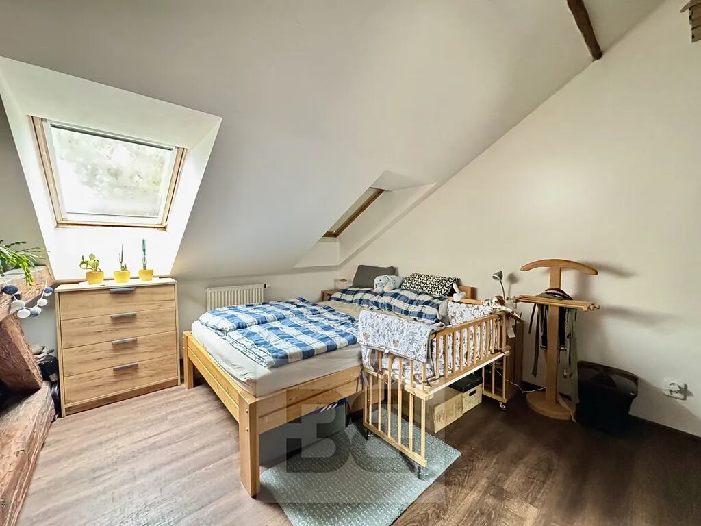 - ložnice: velká skříň, šuplíky velké i malé mezi trámy, postel.