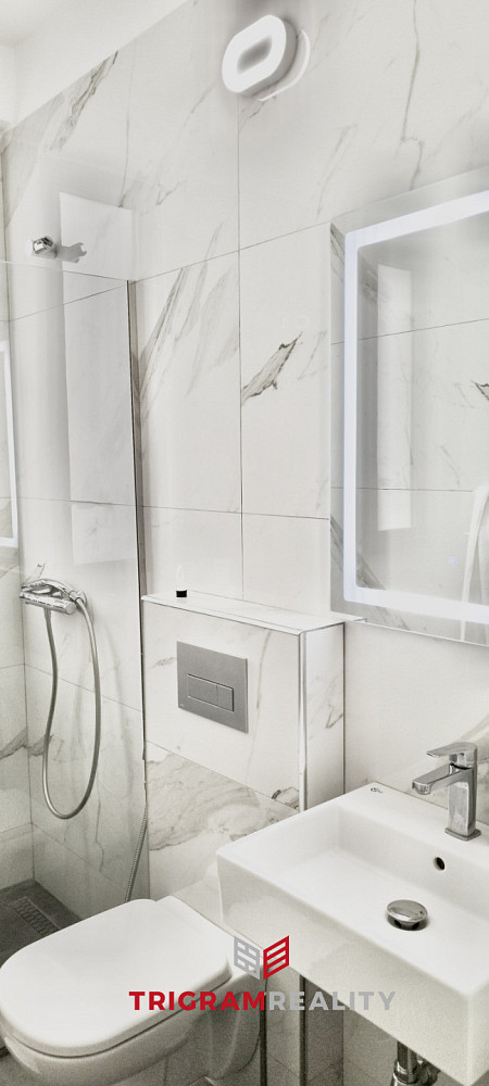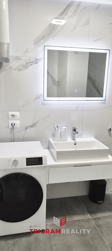 Interiér je vkusně laděný. Obývací část s kuchyňským koutem je laděna s důrazem na pohodlí. Bytová jednotka má dvě samostatné koupelny a dvě další samostatné ložnice. Celý prostor je prosvětlený, vzdušný a nadčasový. Samozřejmostí je klimatizace, a nadstandardní hliníková okna.
