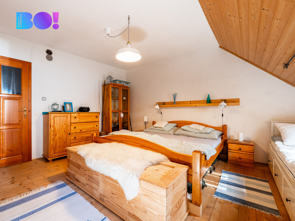 3.NP - prostorná ložnice, pokoj, chodba, koupelna ze které je vstup do dalšího půdního pokoje.
