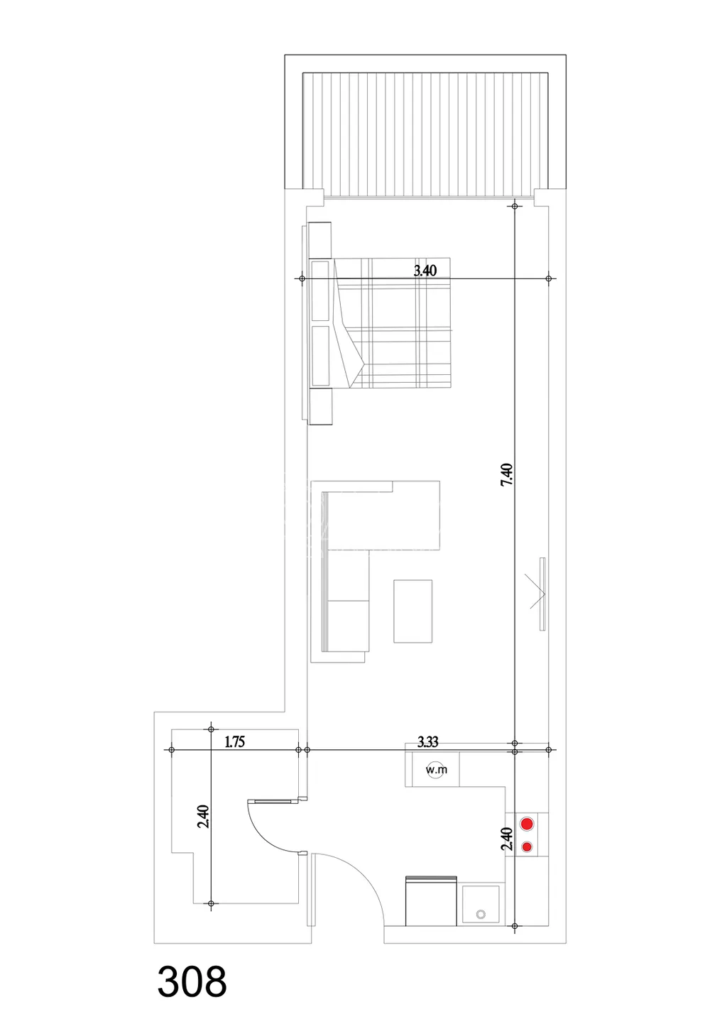 Nabízený byt má započtenou plochu 59 m2 (včetně podílu na společných prostorách, přibl. 20 % ze započtené plochy). Byt má dispozici 1+kk (velký pokoj s kuchyňským koutem a koupelna s WC) s lodžií. Byt se nachází na 3. patře čtyřpatrové budovy, výhled je na klidný bulvár Mamsha a moře vzdálené přibl. 200 m vzdušnou čarou. Orientace bytu je východní. Je připraven k okamžitému užívání.