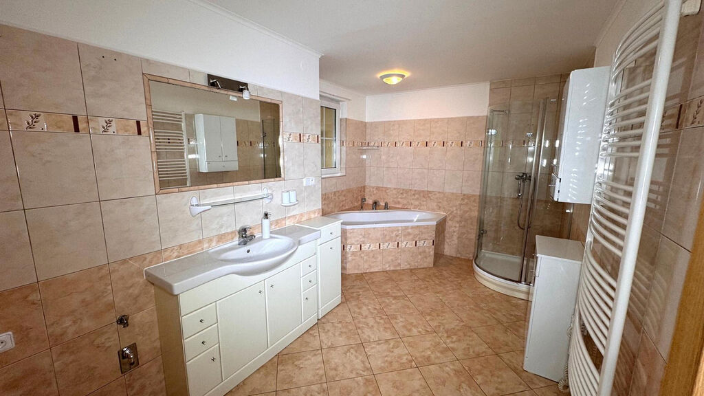 Dům je vybaven moderním podlahovým vytápěním, které zajišťuje rovnoměrné a příjemné teplo v každé místnosti. Vytápění je zajištěno pomocí plynového kotle a krbu v obyváku, což přispívá k úsporám na energiích a zajišťuje efektivní provoz. Kolaudace domu v roce 2005.