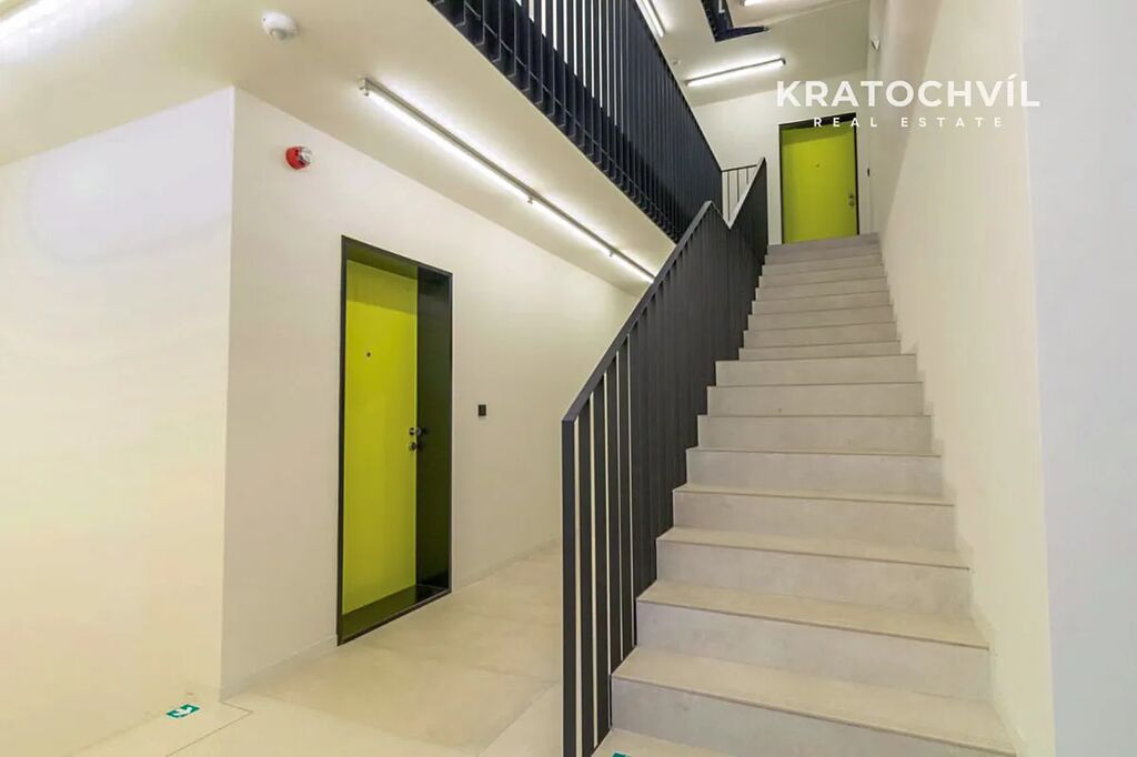 Byt se nachází v 1. patře moderní novostavby menšího čtyřpatrového domu jen pár kroků od stanice metra A – Veleslavín.