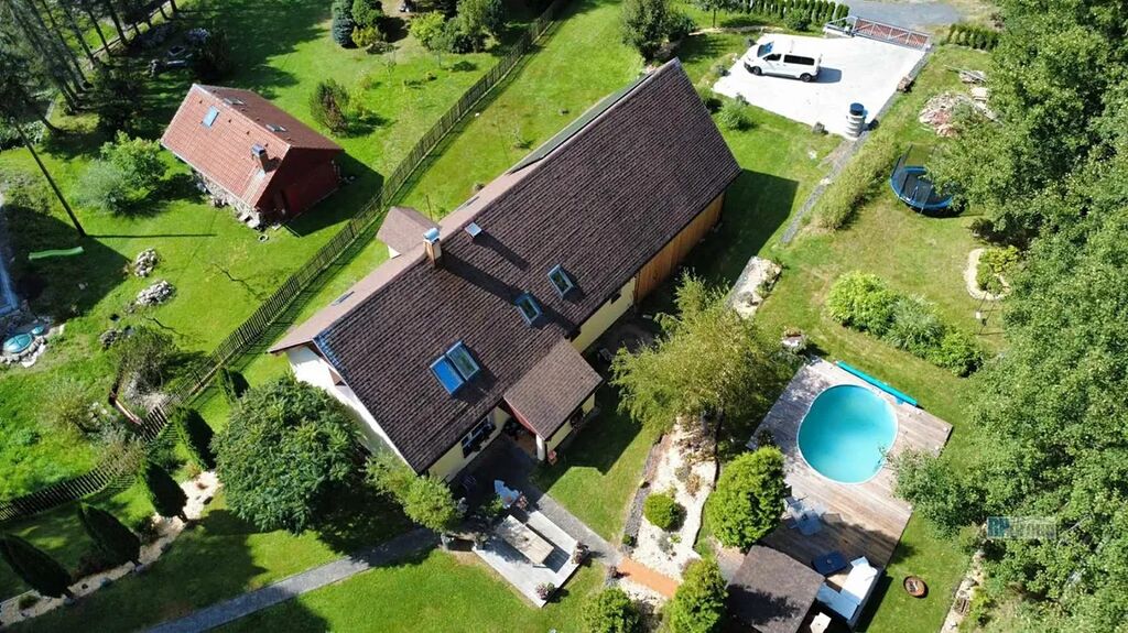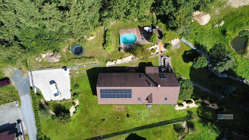 Nabízíme k prodeji krásný zrekonstruovaný RD o dispozici 5+1 s přilehlou velkou stodolou, určenou k dalšímu využití ( dílna, podnikání, bydlení apod. ). K domu náleží velký pozemek o výměře 2284 m2 s dvěma příjezdy, velkým parkovištěm - 130 m2, bazénem a posezením s altánem. Dům je částečně podsklepený. V přízemí najdeme obývací pokoj (krbová kamna), ložnici, kuchyň se spotřebiči a jídelním koutem, prostornou chodbu, koupelnu s vanou a samostatným WC. V patře pak najdeme 3 pokoje, koupelnu se sprchovým koutem a WC. K domů bezprostředně přiléhá stodola a poskytuje tak další možnost využití - lze zde čerpat dotace. Vytápění je zajištěno tepelným čerpadlem vzduch/voda - NIBE. Fotovoltaika 7 kW. Okna plastová, kamerový systém, vlastní studna, vlastní čistička, elektrická vjezdová brána. Na velké okrasné zahradě pak najdeme bazén s pergolou, 2 terasy a parkoviště. Nízké měsíční náklady na celkový provoz domu - 6.000,- Kč/měsíčně.