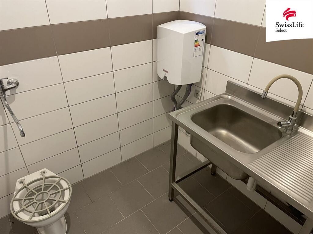 Sociální zázemí v tomto pravém křídle nabízí kompletní pánské a dámské WC, umývárnu, výlevku, sprchu, úklidovou místnost i skládek. Chybí osazení samotnými zařizovacími předměty (toalety, baterie).