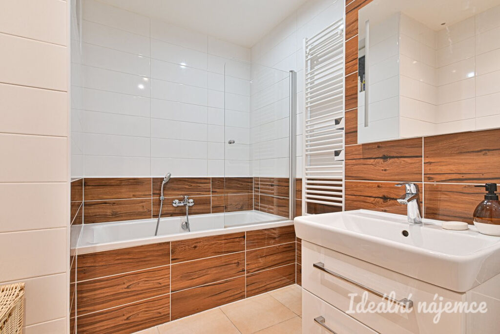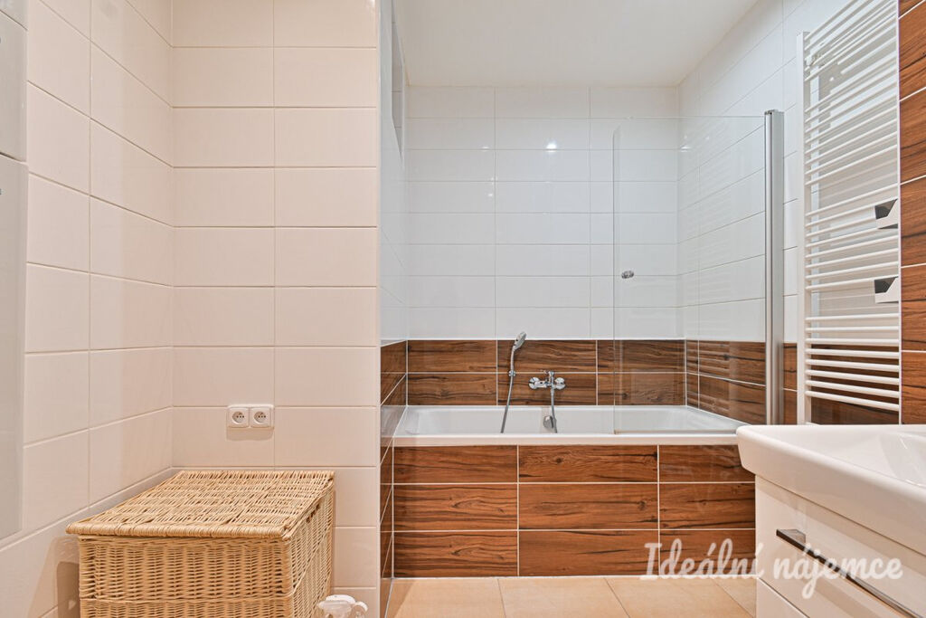 Koupelna je vybavena vanou a umyvadlem se skříňkou. Toaleta je oddělená.