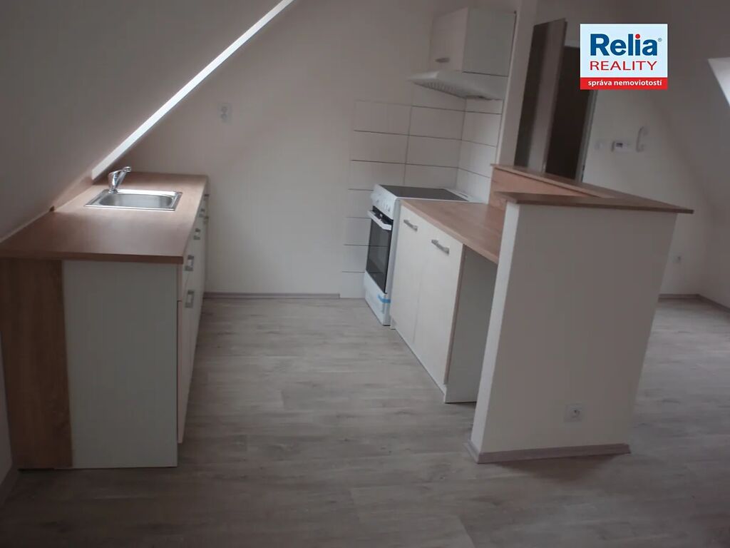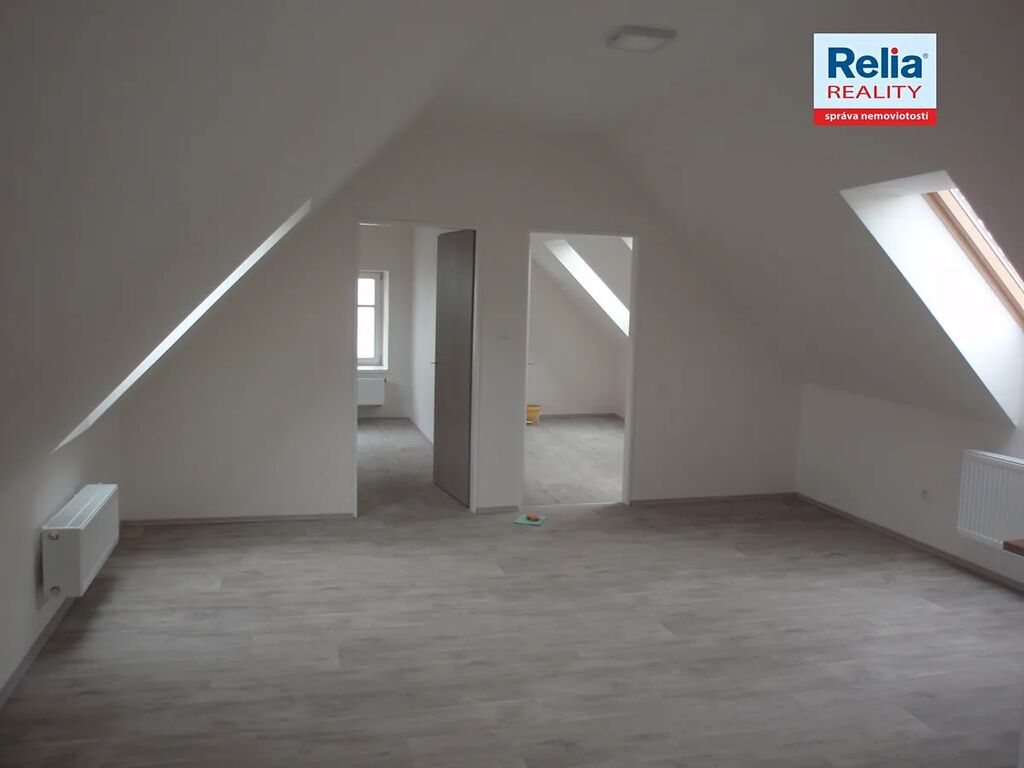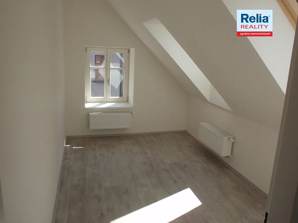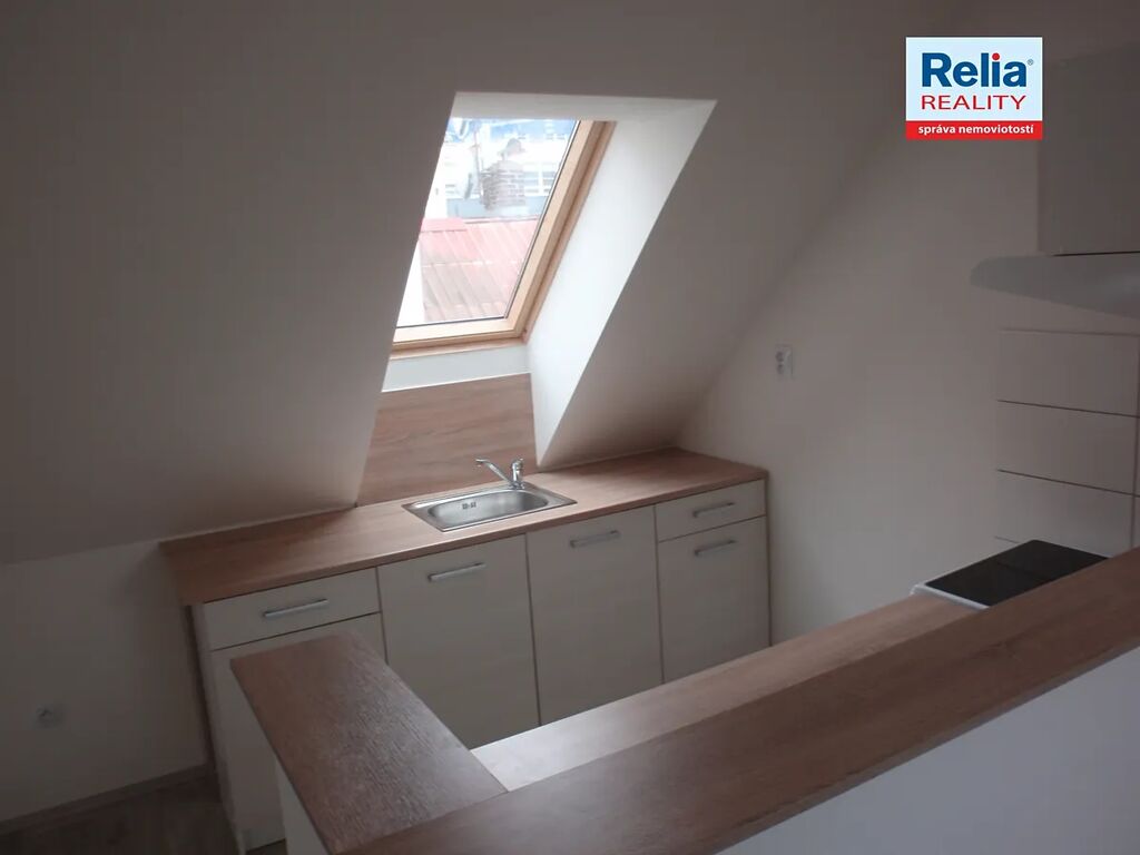 Nabízíme k pronájmu podkrovní byt v nájemním cihlovém domě v centru Liberce u Nerudova náměstí. Dům prošel před časem kompletní rekonstrukcí včetně výměny oken, dveří, opravy fasády apod. Nabízený byt má atypicky řešenou kuchyňskou linku, dveře a podlahy v přírodních barvách, dřevěná okna jsou doplněna žaluziemi. Kuchyňská linka je vybavena elektrickým sporákem a digestoří. Prostorná koupelna je s vanou, umyvadlem a WC, připojení na pračku. V předsíni bytu je k dispozici vestavěná úložná skříň na míru s posuvnými dveřmi. Vytápění v domě zajišťuje vlastní moderní plynová kotelna, nájemníci mají možnost si sami regulovat teplotu v bytě pomocí prostorového termostatu. K nájmu se hradí záloha na služby spojené s pronájmem, vlastní smlouva na odběr elektřiny.