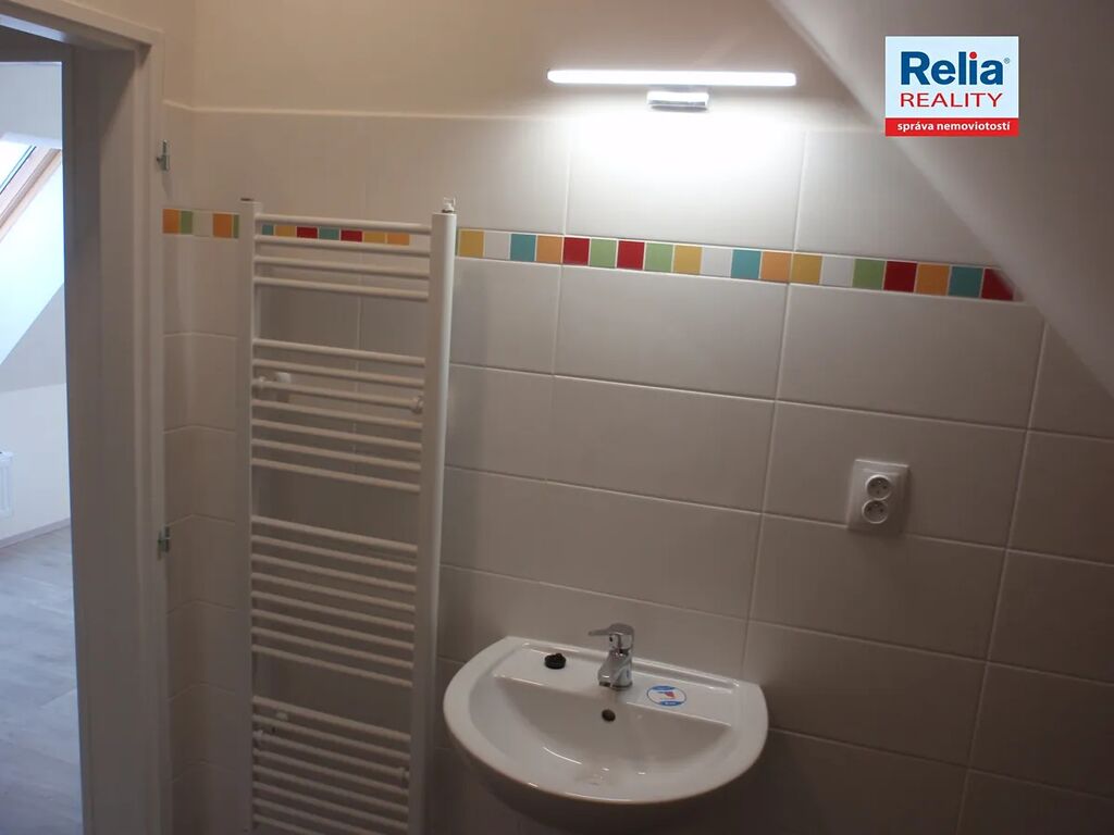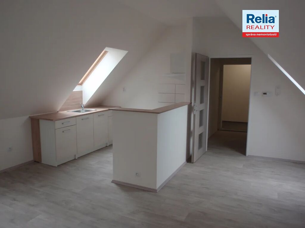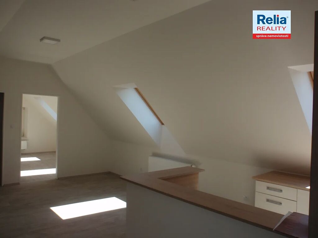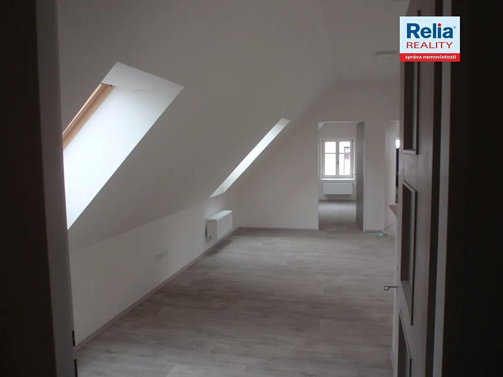 Nabízíme k pronájmu podkrovní byt v nájemním cihlovém domě v centru Liberce u Nerudova náměstí. Dům prošel před časem kompletní rekonstrukcí včetně výměny oken, dveří, opravy fasády apod. Nabízený byt má atypicky řešenou kuchyňskou linku, dveře a podlahy v přírodních barvách, dřevěná okna jsou doplněna žaluziemi. Kuchyňská linka je vybavena elektrickým sporákem a digestoří. Prostorná koupelna je s vanou, umyvadlem a WC, připojení na pračku. V předsíni bytu je k dispozici vestavěná úložná skříň na míru s posuvnými dveřmi. Vytápění v domě zajišťuje vlastní moderní plynová kotelna, nájemníci mají možnost si sami regulovat teplotu v bytě pomocí prostorového termostatu. K nájmu se hradí záloha na služby spojené s pronájmem, vlastní smlouva na odběr elektřiny.