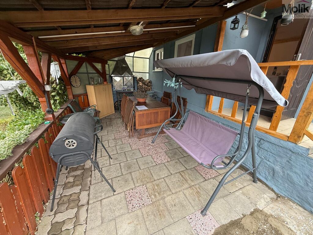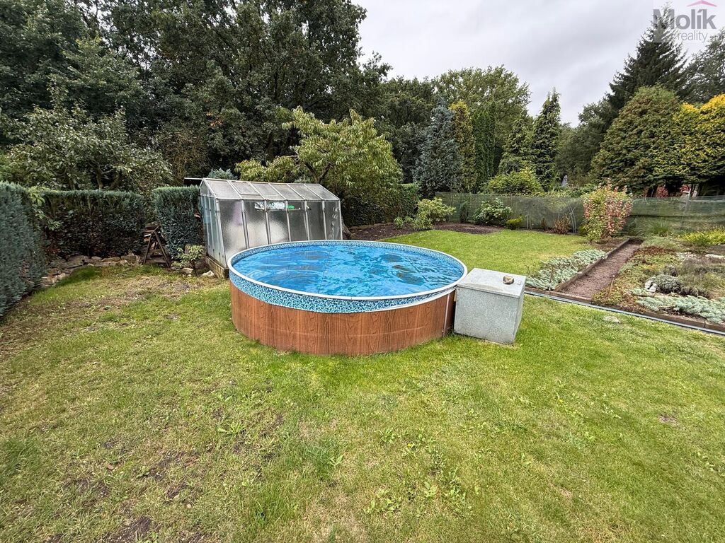 Na pozemku je zavedena elektřina, k dispozici je užitková voda s ročním poplatkem 750 Kč, suchý záchod, bazén, skleník a příjemné venkovní posezení.