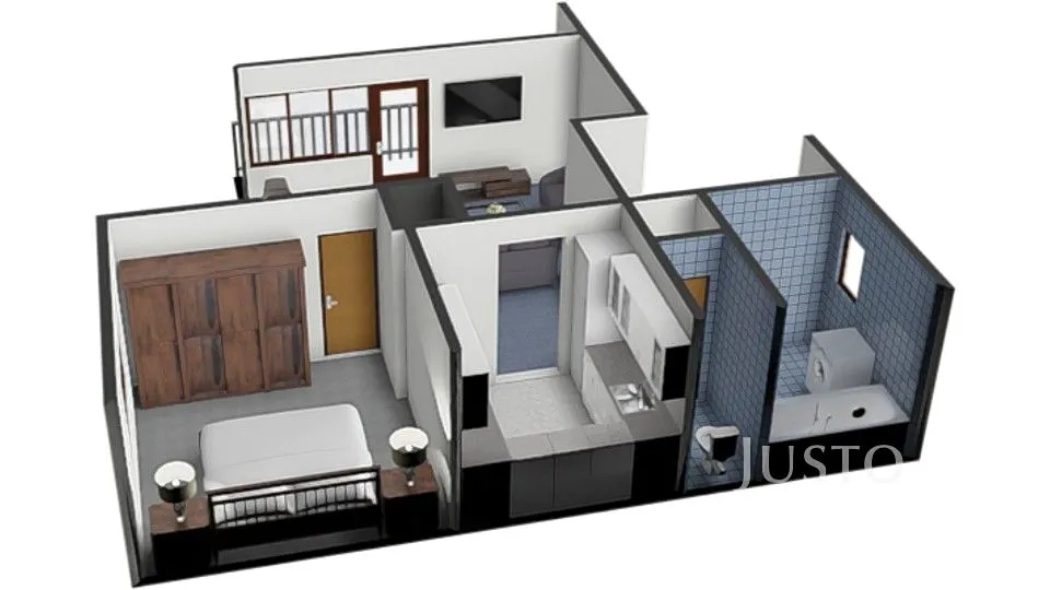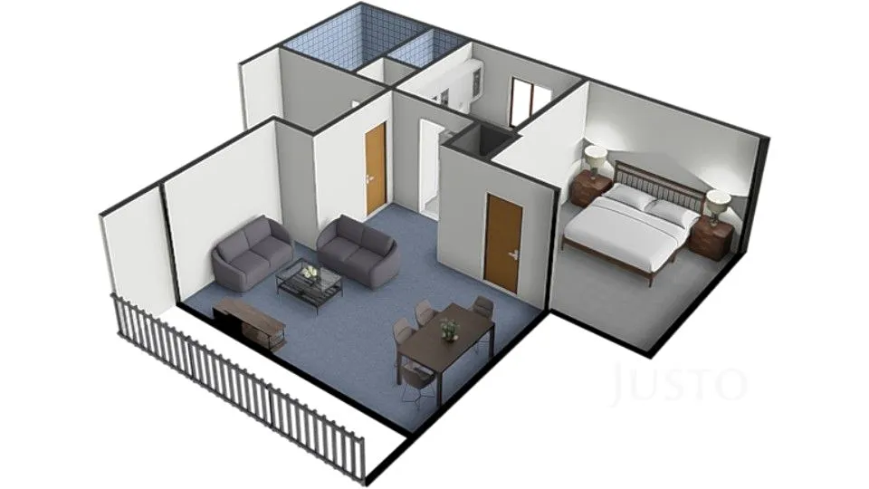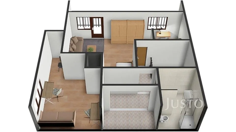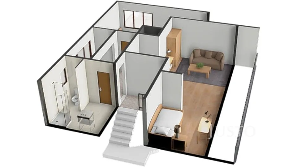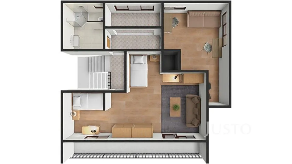 2. NP: kuchyně, ložnice, obývací pokoj, koupelna a WC.