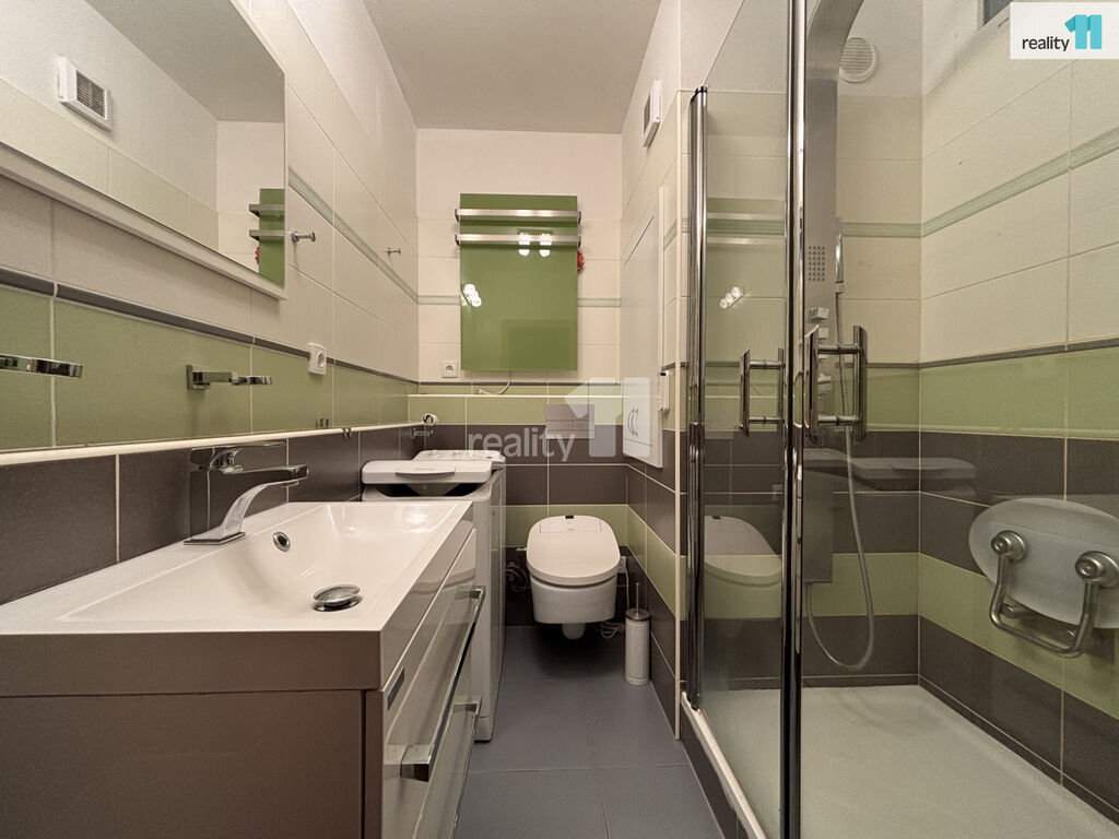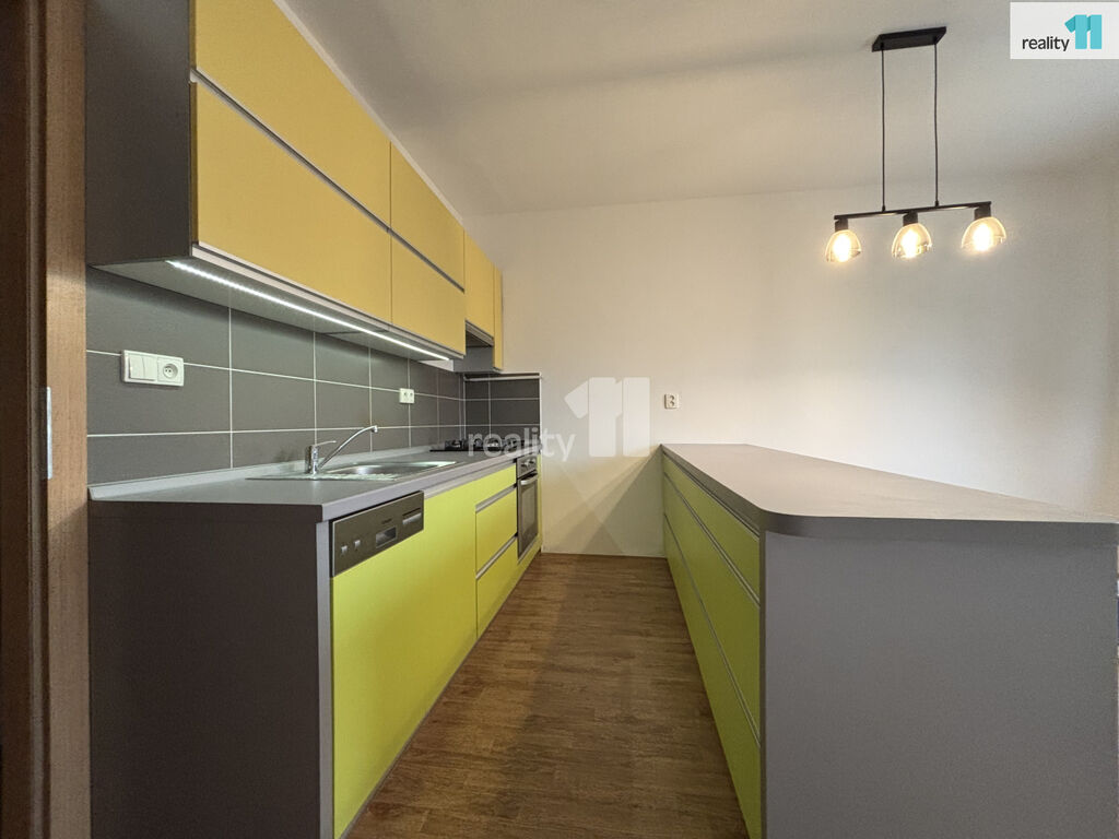 Nová moderní kuchyňská linka s ostrůvkem vybavena vestavěným spotřebiči - vestavná trouba, plynová varná deska a myčka na nádobí. Vybavení bytu: lednice, pračka, vestavěná šatní skříň.