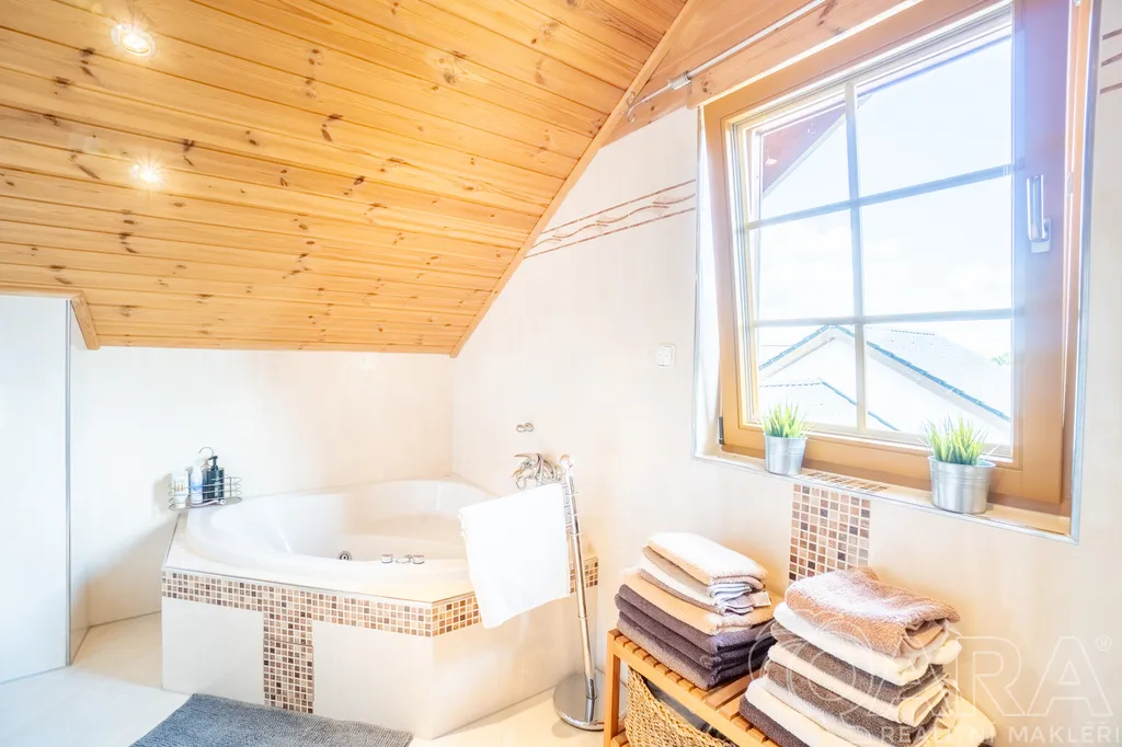 Velký bonus je nová prostorná garáž pro 5 aut, včetně obytných vozůa možnost dostavby další místnosti v podkroví.