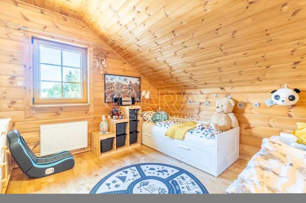 2. podlaží: ložnice, dva dětské pokoje, šatna, koupelna s WC a další samostatné WC.