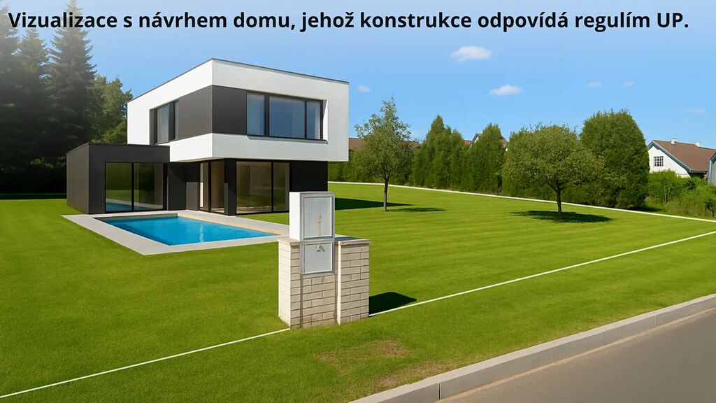 Dle územního plánu je možná výstavba rodinného domu (max. 2 nadzemní podlaží + podkroví), doplňková zeleň i menší stavby (garáž, zahradní domek).