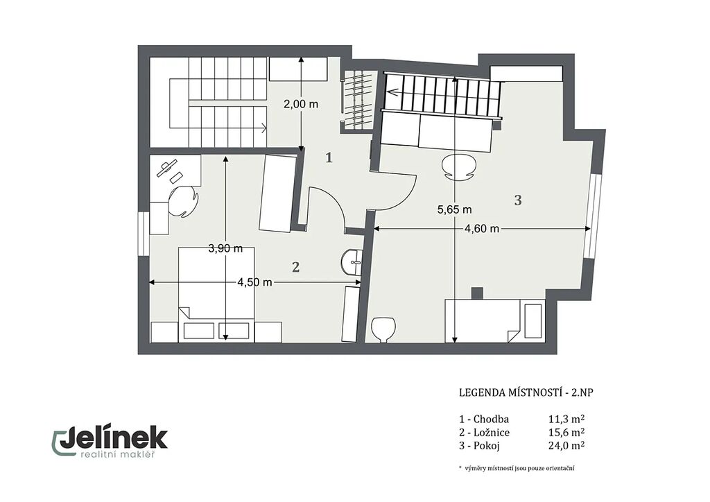 - dispozice: 2 podlaží, 1 bytová jednotka