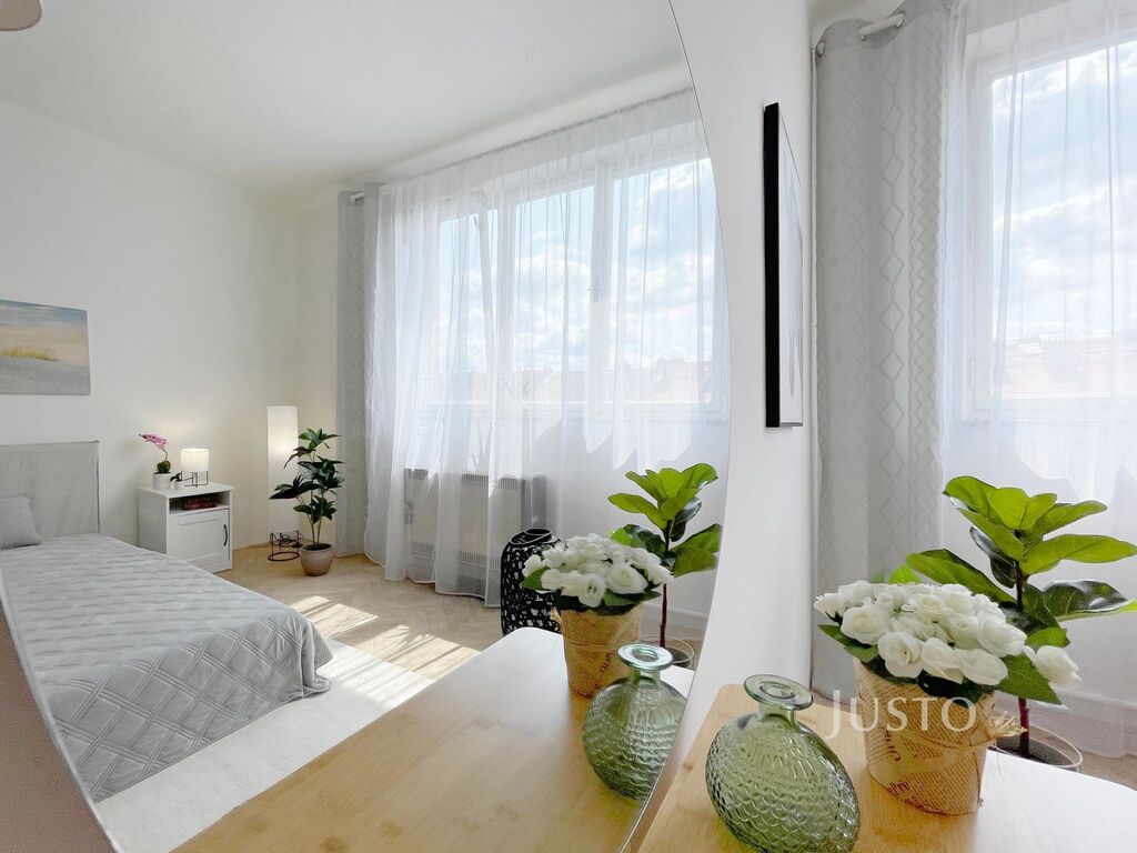 - Jižní orientace dvou pokojů do rozlehlého vnitrobloku se vzrostlou zelení