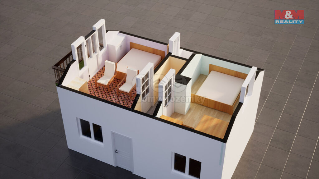 V malebné obci Čtveřín, části Doubí, nabízíme zděnou chalupu se zastavěnou plochou 36 m² a užitnou cca 50 m² na pozemku 432 m². Přízemí prošlo rekonstrukcí v roce 2012 (kuchyň, koupelna, obývací pokoj), v podkroví jsou dva světlé pokoje s balkonem a krásným výhledem do zeleně. Součástí je terasa, elektřina 230/400 V, voda z obecního vodovodu, topení krbovými kamny a žumpa. Pozemek je řešen terasovitě, přímo u chaty je prostor pro venkovní posezení i vybudování vlastního parkování, takže auto zaparkujete pohodlně na vlastním. Příjezd vede po obecní slepé cestě, což zaručuje naprostý klid a soukromí bez provozu. Pozemek je v ploše BV – bydlení v rodinných domech. Díky stávající stavbě a historickému vymezení je možné rozšíření nebo výstavba nové stavby i pod obvyklou hranicí 800 m², což celý proces povolování zjednodušuje (výňatek z územního plánu je mezi fotografiemi). Klidná lokalita s výbornou dostupností R35, vlakem i busem, v blízkosti Český ráj, koupaliště a zámek Sychrov.