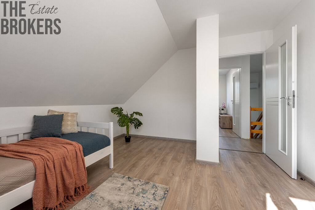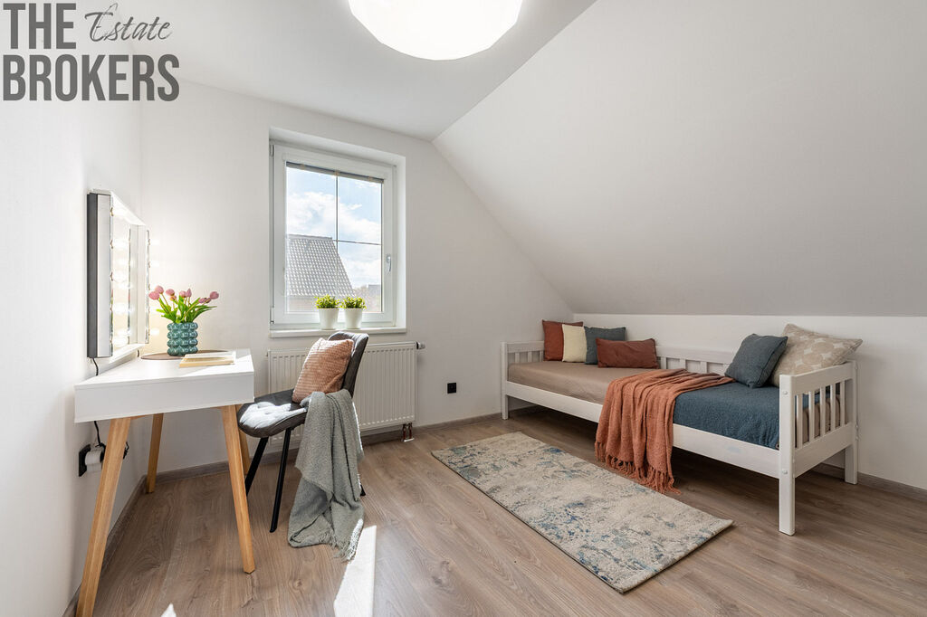 V přízemí se dále nachází technická místnost a koupelna s toaletou, což zajišťuje praktické zázemí pro každodenní život. Po dřevěných schodech vystoupáte do podkroví, kde je ložnice a dva samostatné pokoje, ideální jako dětské pokojíčky či pracovny. V podkroví nechybí ani druhá toaleta. Půdní prostor pak nabízí dostatek místa pro uskladnění sezónních věcí a může sloužit i k dalšímu využití.