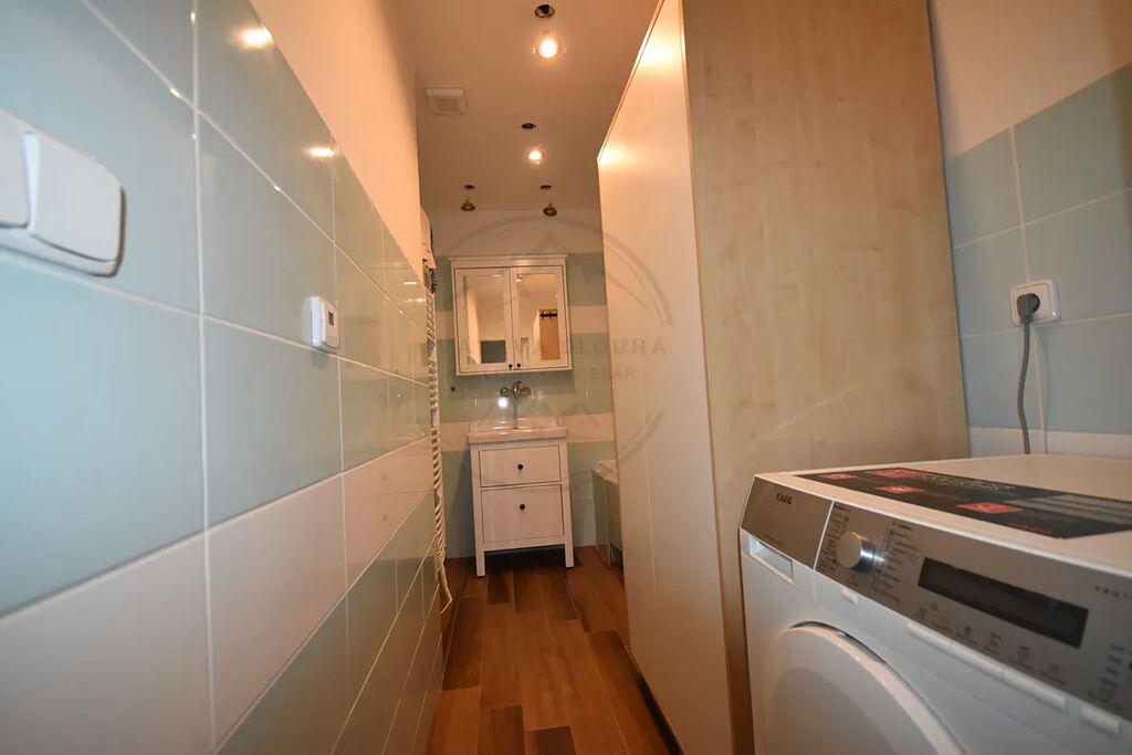 - Dispozice: chodba, dětský pokoj, kde se nachází dětské postele, koupelna s vanou a pračkou, samostatné WC, prostorná kuchyň propojená s vestavnými spotřebiči propojena obývacím pokojem, ložnice se šatnou.
