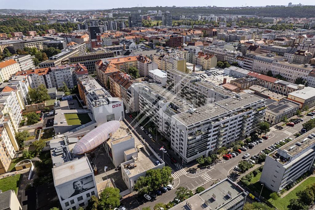 Byt se nachází v klidné ulici Poupětova, jen pár minut chůze od parku Stromovka a Vltavské náplavky. Díky blízkosti tramvajové zastávky a stanice metra C – Vltavská je centrum města skvěle dostupné během několika minut.