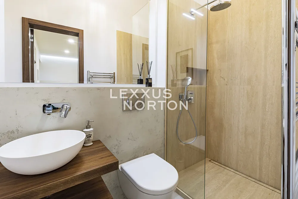 Tento rekonstruovaný, luxusně zařízený byt 3+kk k pronájmu nabízí k užívání vstupní chodbu, prostorný obývací pokoj s plně vybaveným kuchyňským koutem (sporák, trouba, lednice, mrazák, myčka nádobí) a jídelním prostorem, ložnici s vlastní koupelnou v kvalitním mramorovém provedení (vana, sprchový kout), pracovnu s krbem, šatnu, další koupelnu a komoru. Z bytu je krásný výhled na Riegrovy sady. K dispozici je zde také sklep za dodatečný poplatek. Možnost pronájmu parkovacích stání za závorou (cca 100 m od domu) za extra měsíční poplatek 2 500 Kč/stání + DPH.