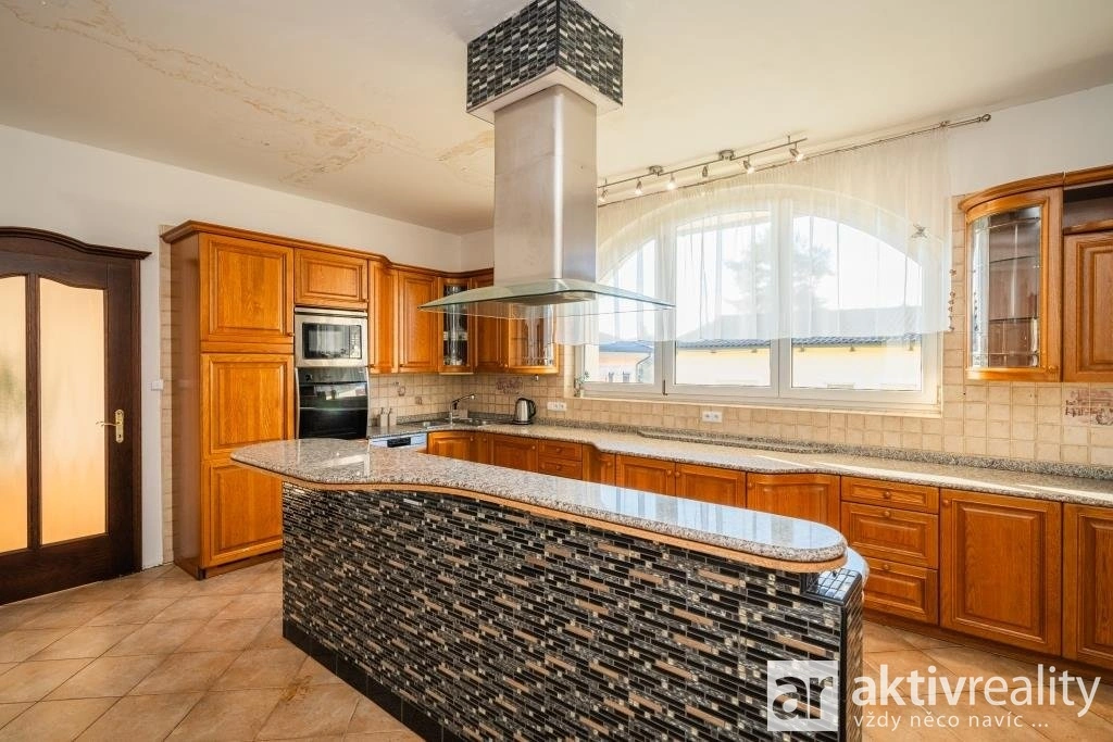 Součástí prodeje je i prostorná vila o podlahové ploše 1 093 m², postavená přibližně před 26 lety. Dům s 35 místnostmi a 6 koupelnami nabízí velkorysý prostor a vyžaduje částečnou rekonstrukci.