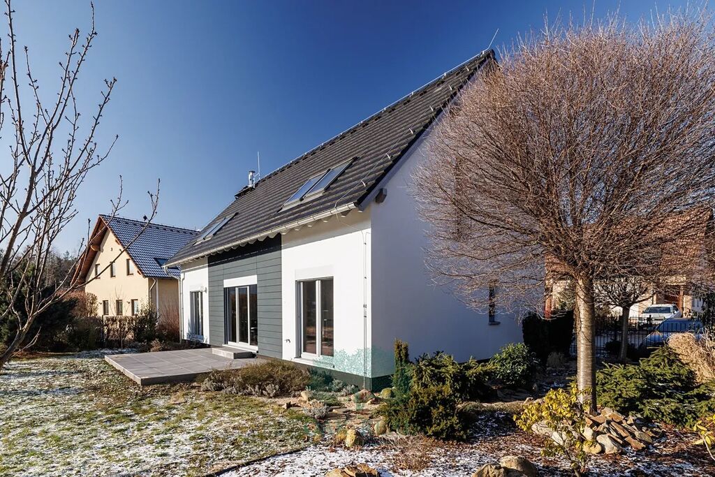 Nemovitost je vhodná pro zájemce, který hledá bydlení v blízkosti Prahy a chce převzít hotový dům na klíč – bez starostí a stresu spojeného se stavbou. Fotografie exteriéru a interiéru domu jsou použity ze vzorového domu RD Rýmařov, který si můžete prohlédnou v Praze po telefonické dohodě. Složením zálohy během října 2025 získáte jistotu dokončení a předání domu už v létě 2026.