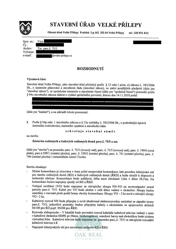 Pozemek je napojen na inženýrské sítě – přípojka elektřiny, vody a kanalizace je na jeho okraji.