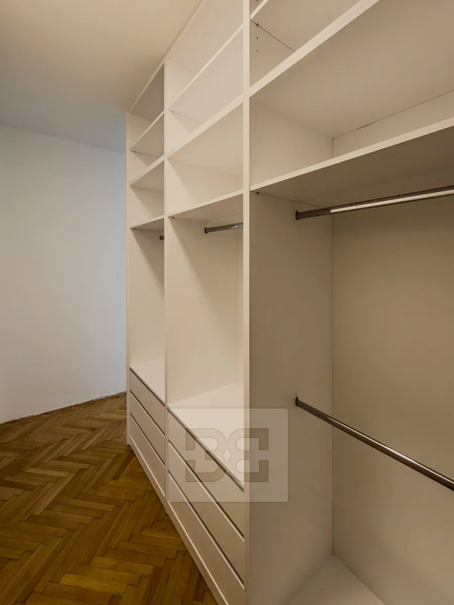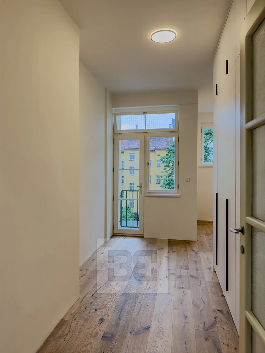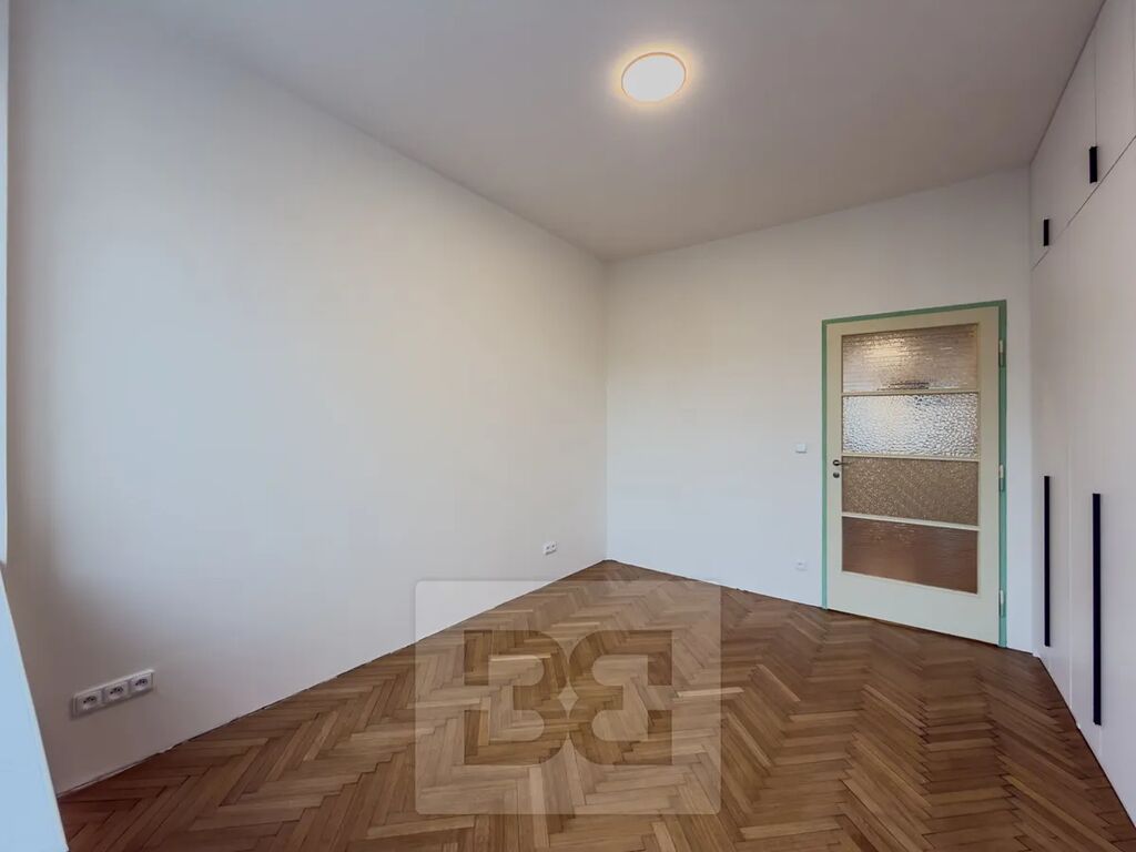 Nabízíme k dlouhodobému pronájmu jedinečný byt 4+kk o rozloze 118 m2, který se nachází ve třetím patře funkcionalistického domu s výtahem, v ulici Vinařská u Strossmayerova náměstí. Byt prošel kompletní a náročnou rekonstrukcí: renovace podlah, nové koupelny, nová kuchyně a vestavný nábytek, nová okna. Dominantou bytu je prostorný obývací pokoj s kompletně vybavenou kuchyní, který se dá rozdělit původními skládacími dveřmi, představujícími velmi praktický prvek pro pružné členění prostoru. Krásná okna na celou šířku stěny zajišťují průnik velkého množství denního světla. Z haly se dostanete do hlavní ložnice, která je vybavena velkou šatnou a oddělenou koupelnou s WC a sprchovým koutem. Na druhém konci obývacího pokoje najdeme druhou ložnici s oknem do vnitrobloku a velkou vestavnou skříní. Z předsíně je vstup do menšího pokoje s balkonem, který může sloužit jako dětský pokoj nebo pracovna. Tento pokoj je též vybaven šatní skříní. Dále z předsíně vstoupíte do koupelny s vanou a na samostatné WC.