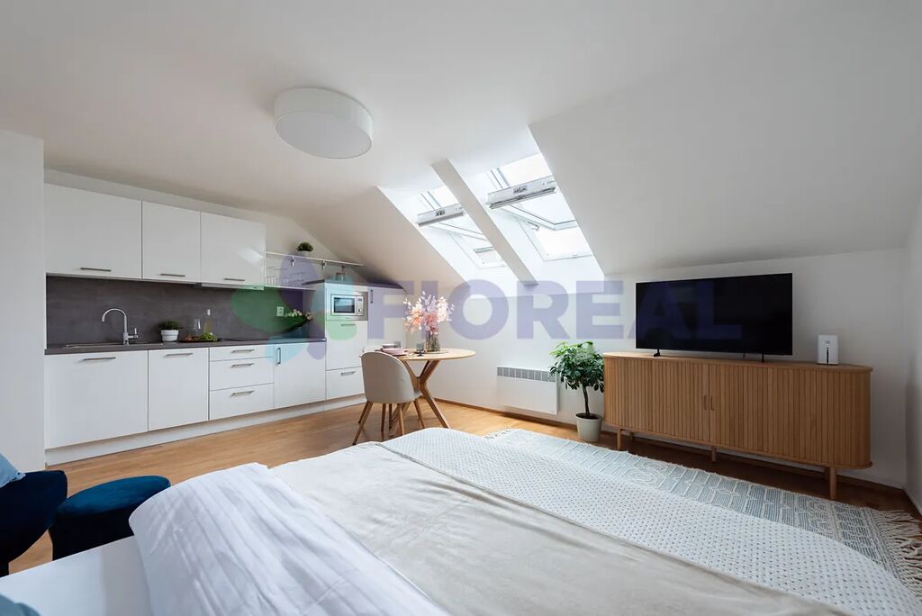 V exkluzivním zastoupení Vám zprostředkujeme prodej designového, zrekonstruovaného bytu o velikosti 1+kk, ploše 29,7m², v šestém nadzemním podlaží cihlové domu s výtahem. Byt je situován v původní historické zástavbě se zachovanými secesními prvky a nezaměnitelným charakterem místa, kdy je nyní využíván ke krátkodobým pronájmům skrze platformu Airbnb (zhodnocení a konkrétní roční výnosnost na vyžádání u makléře). Konkrétně jde o luxusní rezidenční projekt Ferdinand Palace situovaný v samém srdci Prahy 1 Nového Města, jenž patří mezi unikátní historické objekty, jejichž počátky sahají až do 14. století. Fasádu zdobí busty králů Karla IV. a Jiřího z Poděbrad. Mezi největší přednosti bytu patří minimalistický a vkusný design na míru, klimatizace, dostatek úložných prostor a reprezentativní vstup do domu včetně společných prostor. Jedná se o velmi dobrou lokalitu v samotném centru města s výbornou dostupností díky nedaleké 6 min. vzdálené tramvajové zastávky a stanici metra B Karlovo náměstí nebo ve vzdálenosti do 12 min. metro A, B Můstek či A, C Muzeum. K volnočasovým aktivitám je k dispozici nespočet možností kulturního vyžití, okolních parků, zahrad, restaurací a služeb. V místě se nachází veškerá občanská vybavenost, popřípadě pro větší nákupy lze využít i nedaleké obchodní centrum Quadrio. Celkové měsíční poplatky činí 4.700, Kč, tj. (z toho 1.000, Kč elektřina a 3.700,Kč ostatní služby spojené s užíváním bytu). Volný ihned. Možnost financovat pomocí hypotečního úvěru. Více informací u makléře.