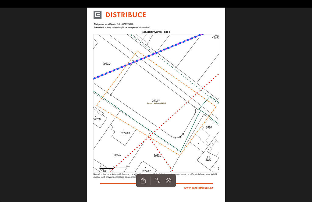 Při plánování stavby je nutné počítat s vedením vysokého napětí, které prochází nad pozemkem. To s sebou nese ochranné pásmo, jež je třeba zohlednit při umístění budoucí stavby.