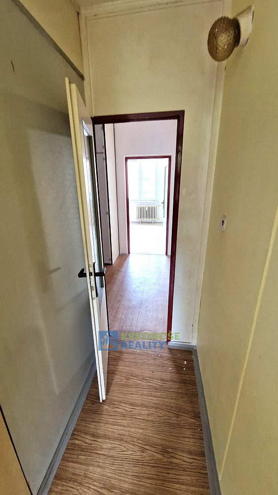 Nabízíme Bytová jednotka 3+1 o celkové výměře cca 77 m² na hezkém místě, ve 2. nadzemním podlaží (1. patro) čtyřpodlažního bytového domu v TRUTNOVĚ – Středním Předměstí, ul. Michnova, ve vzdálenosti cca 1 km od centrálního trutnovského Krakonošova náměstí. Dispozice: vstupní chodba, kuchyň, obývací pokoj s výstupem do lodžie, dětský pokoj, ložnice, koupelna a WC. K bytu dále přísluší velký sklep (cca 6 m²). Ústřední topení – horkovod, voda a kanalizace – obecní, teplá voda – horkovod, el. 220/380 V, plyn. Byt vyžaduje rekonstrukci. Dům je po celkové revitalizaci ve velmi dobrém stavu. Ve vzdálenosti max. 250 m od domu jsou: Základní škola R. Frimla, hřiště, mateřská škola, autobusová zastávka, nedaleko trutnovské střední školy – gymnázium a SZŠ. Bezproblémové parkování přímo před domem. Byt je ihned volný k předání novému majiteli. Po rekonstrukci velmi hezké bydlení.