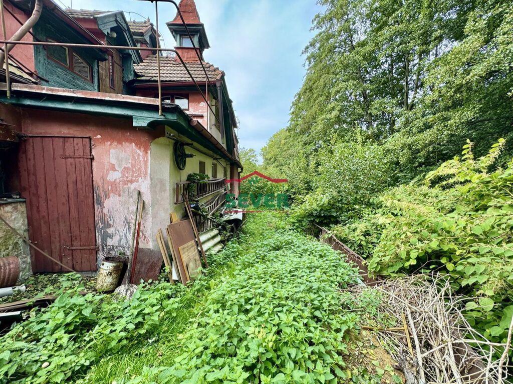 Nemovitosti SEVER vám zprostředkují koupi rodinného domu v Proseči pod Ještědem v okr. Liberec. Rodinný dům se zastavěnou plochou 138m2 disponuje dvěma vstupy. V přízemí se dům skládá z předsíně s jedním vstupem, kuchyně, dvou pokojů, další předsíně s druhým vstupem, koupelny, toalety, vstupů do sklepa, podkroví, patra a na pozemek. Patro domu se skládá z pěti místností dvou komor a dvou teras. Dům je vhodný ke kompletní rekonstrukci dle vlastního uvážení. V domě je rozvedena elektřina bez aktuálně připojeného elektroměru, pitná voda je přivedena z vodovodního řádu, ve sklepě je k dispozici studna, ohřev vody zajišťuje bojler a odpad je svedený do jímky. Vytápění domu je zajištěno kotlem na tuhá paliva, ze kterého je topení ústředně rozvedené. Součástí domu je dílna a garáž. K domu náleží pozemek za domem podél potoka a před domem s celkovou výměrou 235 metrů čtverečních. Na pozemku jsou aktuálně tři místa pro parkování. V obci je k dispozici obchod s potravinami a zastávka autobusu. Část občanské vybavenosti včetně školy, školky a lékaře nalezneme ve zhruba 6km vzdáleném Českém Dubu, veškerou vybavenost poté ve 13km vzdáleném Liberci. Obec leží v malebné krajině Podještědí s ideálními možnostmi pro turistiku, cyklistiku, houbaření a v zimních měsících pro lyžování a běžky. Díky klidnému prostředí s minimální dopravní zátěží je tato oblast vhodná pro rodiny a rekreaci. K Ještědu se z Proseče dostanete za 10-15 minut jízdy automobilem. V případě zájmu vám zajistíme optimální variantu financování na tuto nemovitost za zvýhodněných podmínek pro naše klienty.