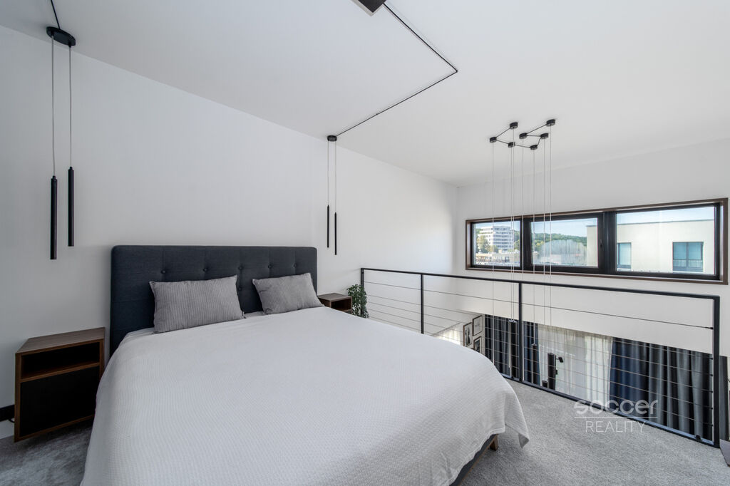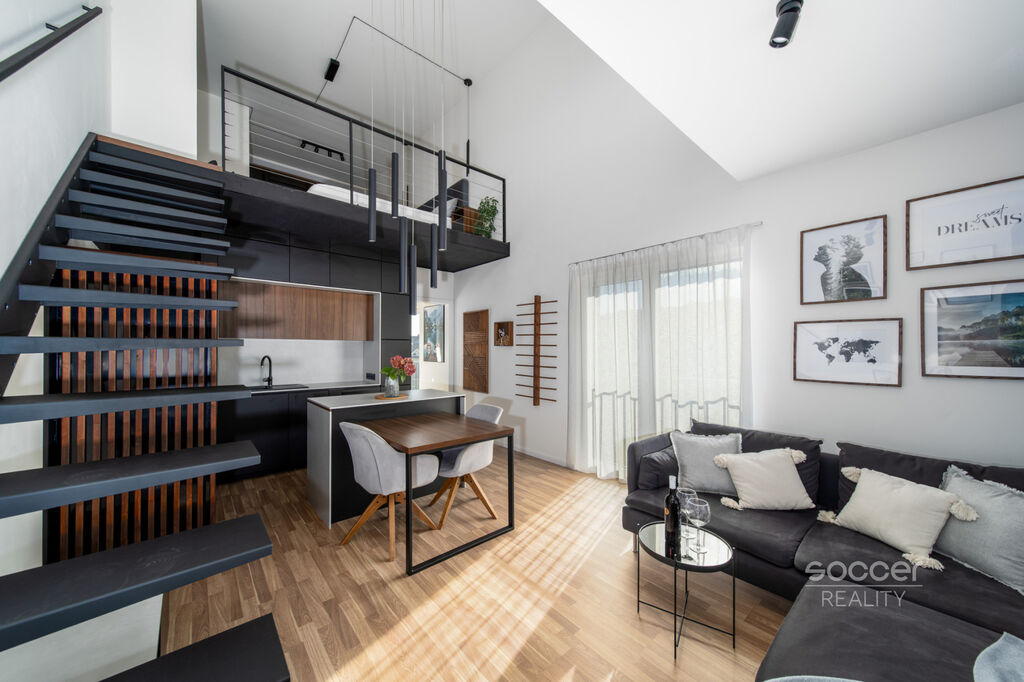 Soccer Reality vám zprostředkuje ke koupi moderní loftový byt 1+kk o ploše 36,1 m² s galerií 18,2 m² a balkonem 7,8 m², který se nachází v 5. NP rezidenčního projektu Bydlení na Krejcárku v Praze 9 – Libeň, ul. Novovysočanská.