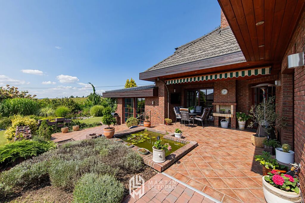 Velkou přidanou hodnotou domu je rozlehlá zahrada plná zeleně, ovocných a okrasných dřevin a velice vkusně doplněna dvěma jezírky a exteriérovými doplňky.