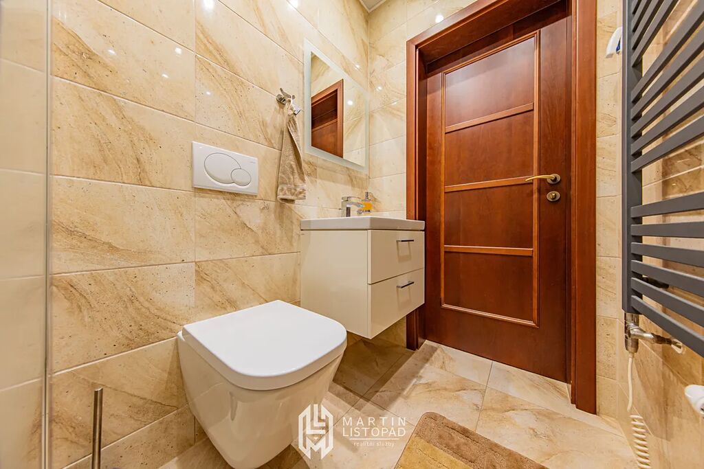 - prostorná kuchyň s na zakázku vyrobenou kuchyňskou linkou, vybavenou kvalitními spotřebiči zn. Miele a AEG, lednicí s mrazákem a na ostrůvku umístěnou indukční sklokeramickou deskou s centrální digestoří